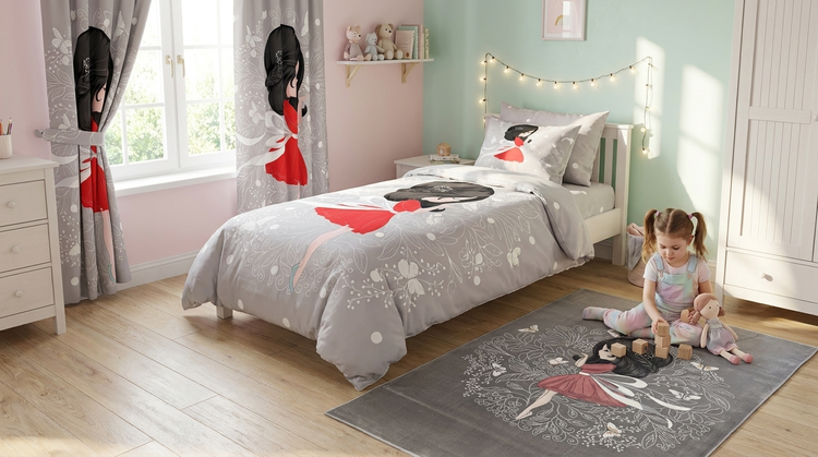 ست فرش و روتختی و پرده دخترانه دختر و پروانه